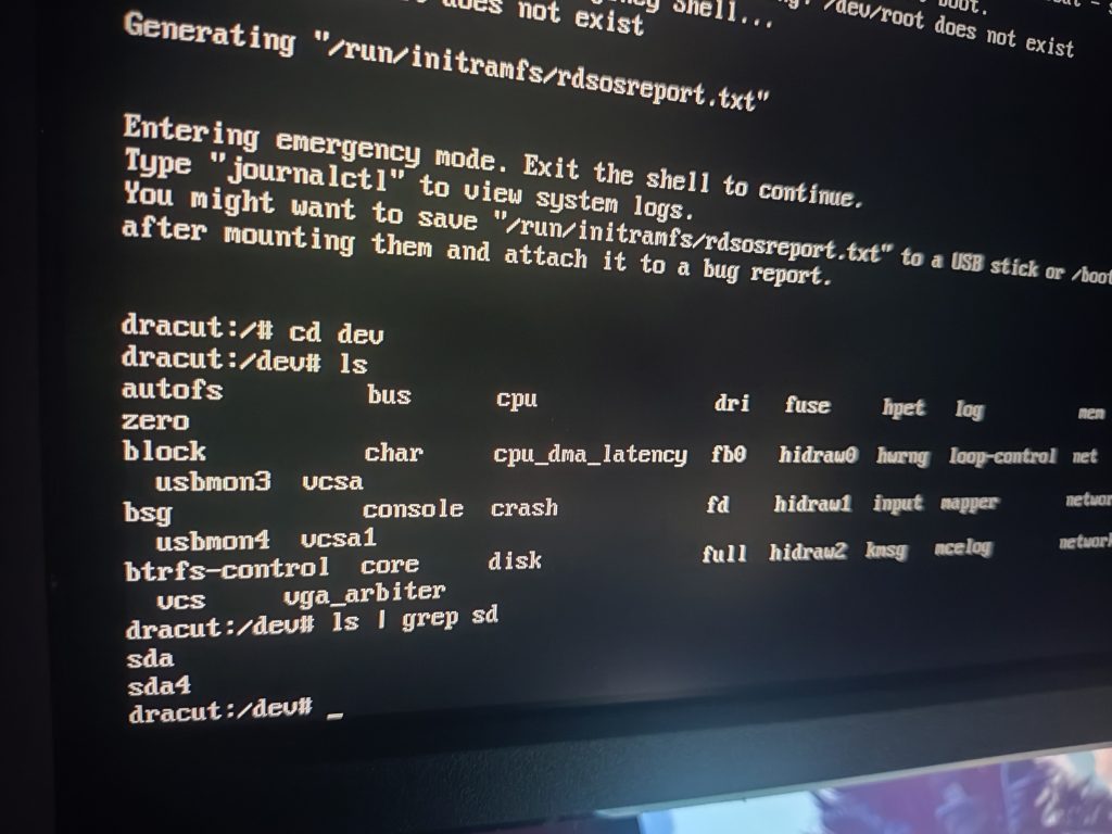 我们通过 cd dev 然后 ls | grep sd 会看到u盘设置路径的设备信息 sda4