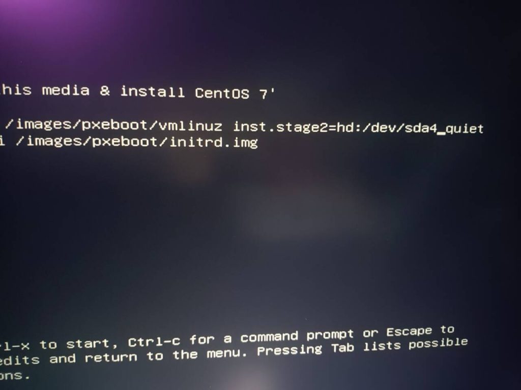 回到之前选择安装界面 按e进入编辑界面,找到inst.stage2=hd:把后面删除改成/dev/sda4 quiet